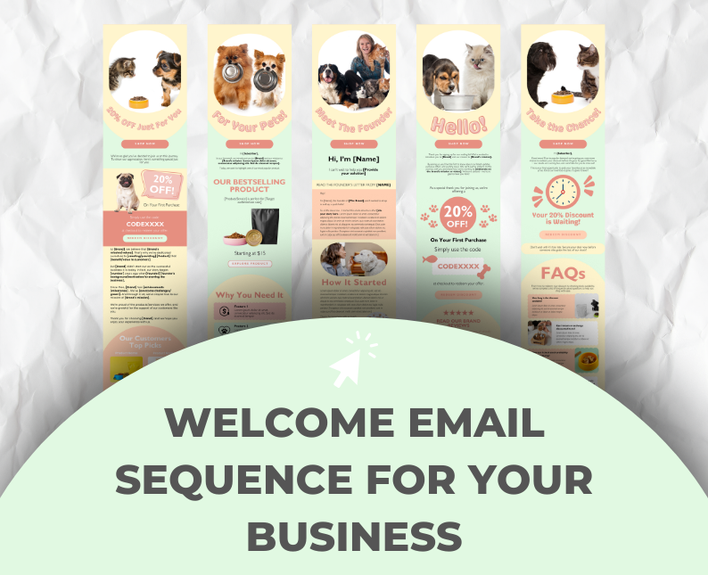 Editable Pet Food Welcome Email Sequence Template for Klaviyo Mailchimp, E-commerce Newsletter Template for Small Business Owners