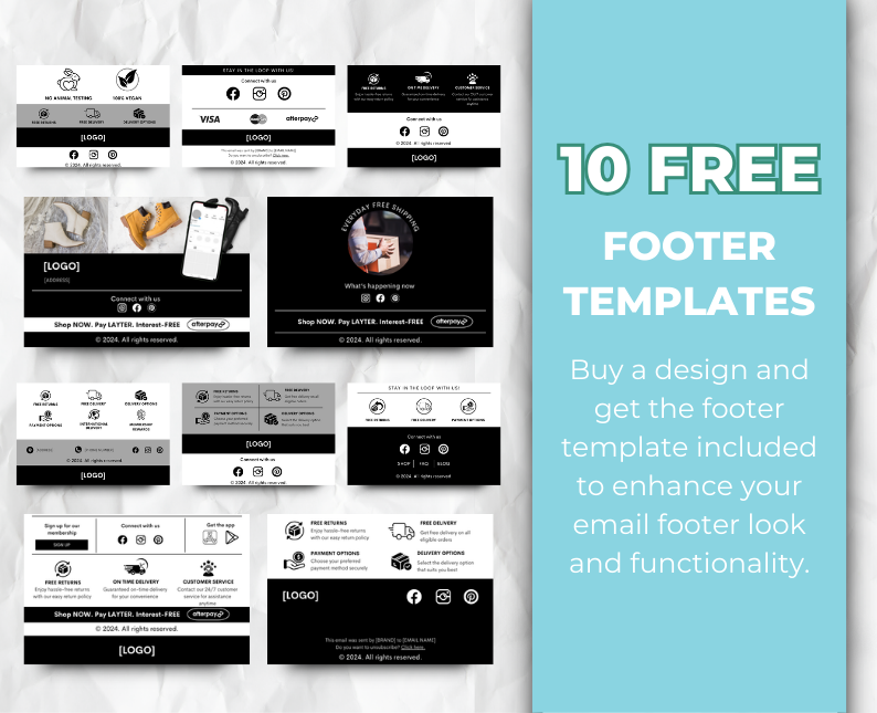 Buy a design and get the footer template included to enhance your email footer look and functionality.